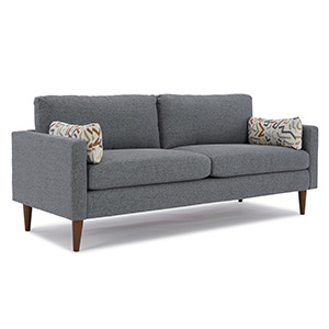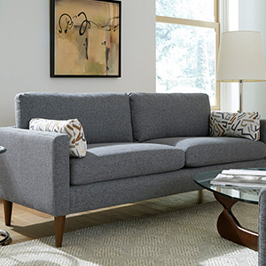 The inviting mid-century style of the Trafton Sofa will provide a fresh, yet classic appeal to make a statement in any space. Loose pillow backs are framed by sleek track arms standing atop beautifully finished tapered wood legs available in several different finish options. This collection is built to last and fully customizable with select top grain leather choices and over 700 fabric options to create something truly unique.